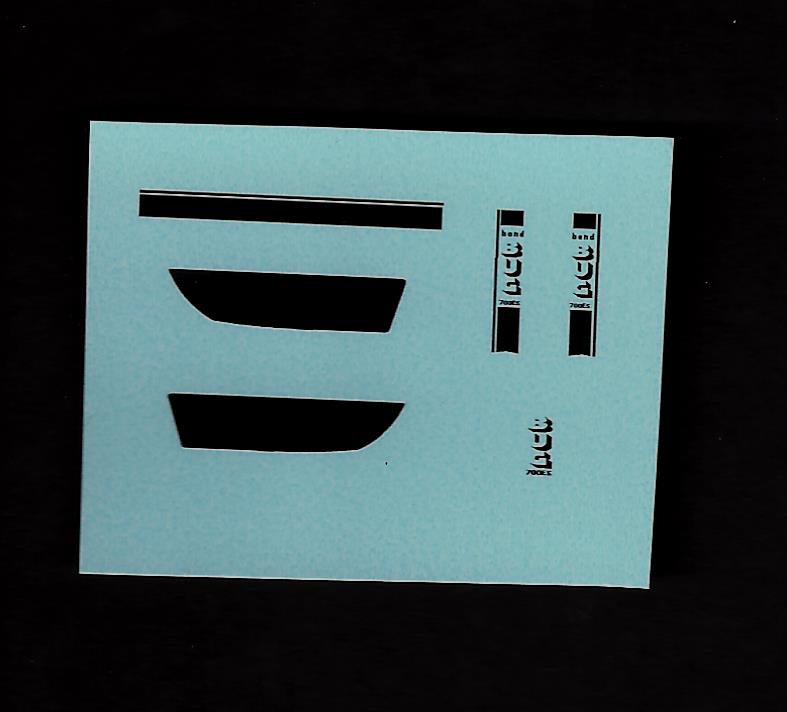 The transfers supplied consist of  2 rear side transfers, 1 rear roof transfer, 1 bonnet transfer and 2 door transfers. The roof transfer is designed to form a continuous stripe from the sides over the roof and should be trimmed as needed.