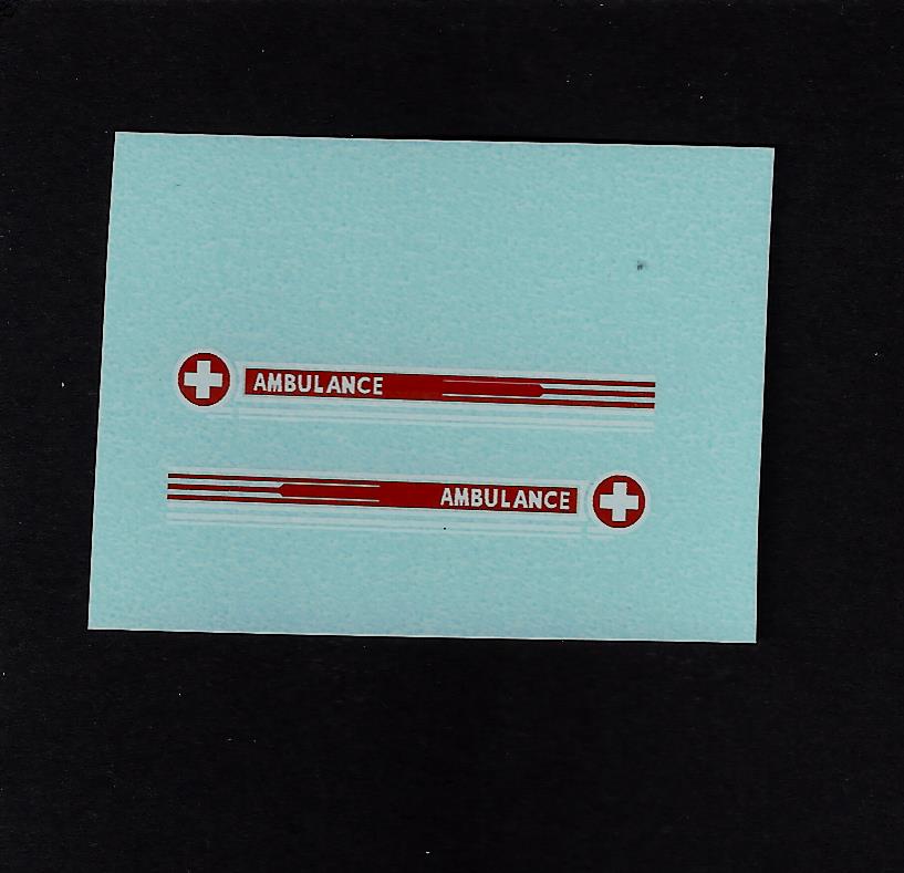 Set of replacement transfers for Corgi model 437 Superior Ambulance. Note these are for the red version and are for fitting to the windows of a disassembled model.