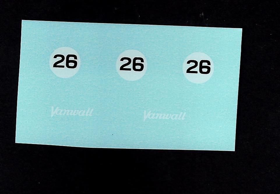 The transfers supplied consist of 3 x car number transfers & 2 x Vanwall lettering.