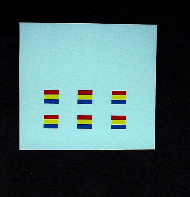 The transfers are blue and red, yellow and blue in colour on a clear carrier.