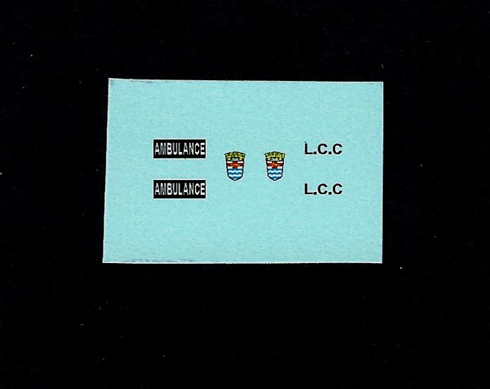 The transfers supplied consist of 2 x front & rear Ambulance boards, 2 x ambulance side crests transfers, 2 x door ‘LCC’ transfers.