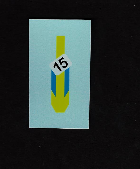 Each transfer is blue, yellow, black and white in colour on a clear carrier.