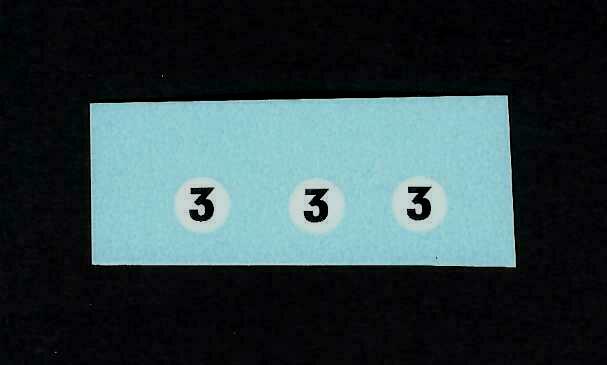 Set of replacement transfers for Matchbox model 52b BRM Racing Car No 3