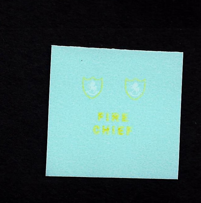 Set of replacement transfers for Matchbox model 59b Ford Fairlane Fire Chief/59c Ford Galaxie Fire Chief.