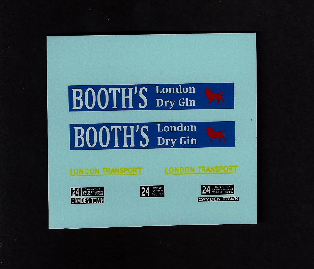 The transfers supplied consist of 2 x bus side advertising, 2 x bus side London Transport transfers, and front, side and rear destination board tranfers.