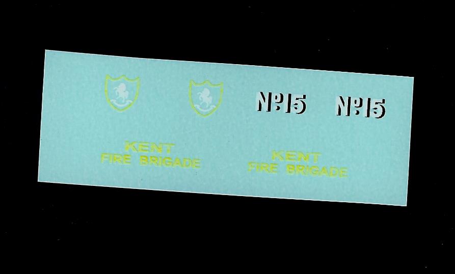 The transfers supplied consist of 2 sets of Kent Fire Brigade wording, logo and No15 wording.