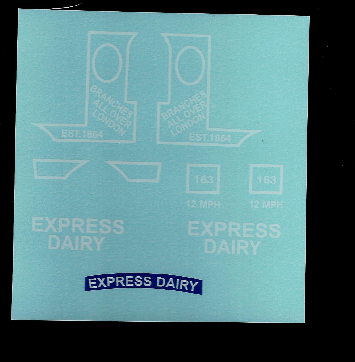 The main Express Dairy transfers are approximately 25mm x 9mm in size.