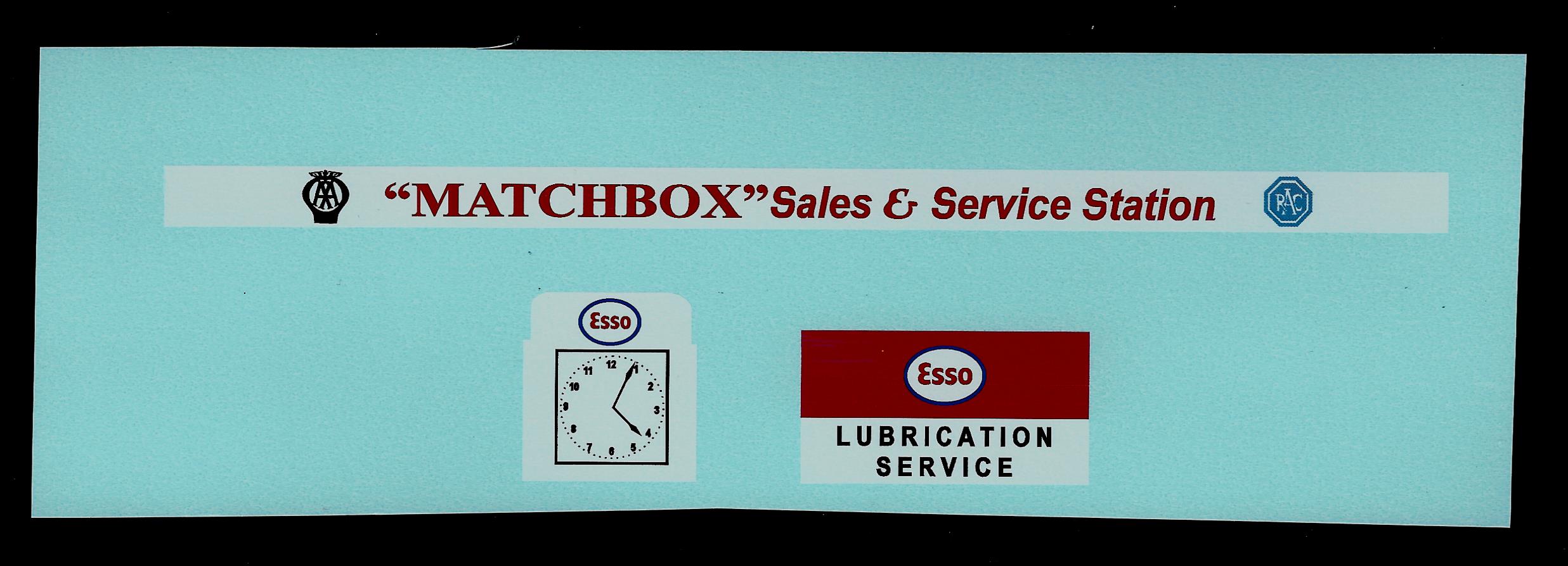 Set of replacement transfers for Matchbox model MG1-2 Service Station ‘Esso’