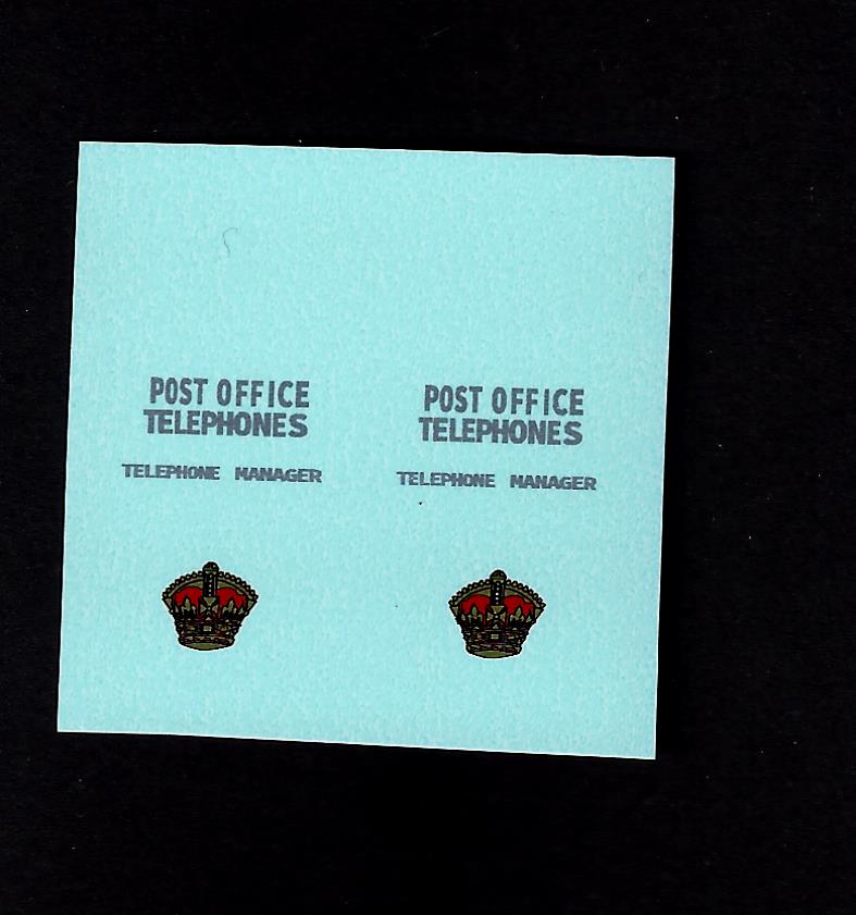 Set of replacement transfers for the Minic model 100M/3125 Morris PO Telephone Van
